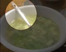 2、炒锅放置旺火上,加入少许油将海白菜,芹菜,大葱节,黄豆芽炒熟,放入味精,加少许香油,起锅装碗内做碗内做底用。