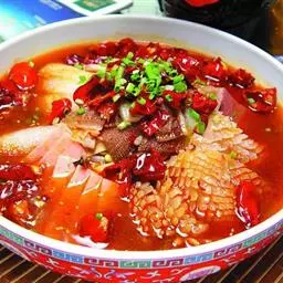 观:打眼望去,一片“红海洋”。正宗的毛血旺,盆内的红油不会少于一半,而且油滑透亮,不浑不浊。其汤汁红亮、麻辣鲜香、味浓味厚的特点。油少不仅影响味道和口感,也不利于保温。在顺序上,建议先吃肉类后吃白菜、粉丝等物。因为菜叶易“挂油”,吃起来更辣。循序渐进,先从不太辣的吃起。
