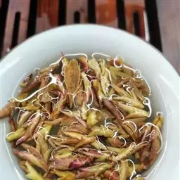 4、黄花抽去睢蕊,干辣椒切节;
