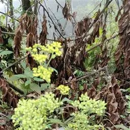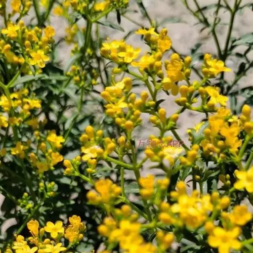 糙叶败酱( Patrinia rupestris Juss.subsp.scabra H.J.Wang),败酱科植物,多年生草本,茎丛生,茎上部多分枝,叶对生,裂片倒披针形、狭披针形或长圆形,聚伞花序顶生,呈伞房状排列,花小,黄色,花冠合瓣,果实翅状,卵形或近圆形,种子位于中央。