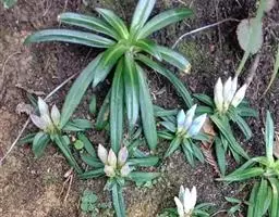 多年生草本,高5-20厘米,基部被黑褐色枯老膜质叶鞘包围。枝2-5个丛生,其中有1-4个营养枝和1个花枝;花枝直立,黄绿色或紫红色,中空,近圆形,具乳突,尤以茎上部为密。叶大部分基生,狭椭圆形或倒披针形,长3-8厘米,宽0.4-1.3厘米,先端钝或钝圆,基部渐狭,叶脉1-3条,在两面均明显,并在下面稍突起,叶柄膜质,长2-7厘米;茎生叶3-4对,匙形或倒披针形,长2.5-3.5厘米,宽0.5-1厘米,先端钝圆,基部钝,叶柄长至2厘米,愈向茎上部叶愈小,柄愈短至无柄。