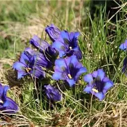 龙胆植物花色艳丽,色彩丰富,有紫、白、蓝、黄白等多种颜色,适宜作为花坛、花镜或盆花。 龙胆最高不过四、五十厘米,大部份是矮小贴地丛生。一株上有许多分枝,花生于枝上顶端,成古钟形或漏斗形,有4-5个裂瓣,全缘的,也有细裂的成流海似的须。龙胆花在秋冬季一片枯黄的草丛中临风开放,显得分外朴实和幽静,龙胆开花一片片一簇簇,临风摇曳,显出一种淡雅、素静的美,因而成为著名的花卉。