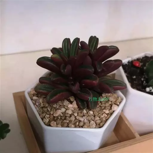 多年生常绿肉质草本植物,植株矮小,高5~8厘米,全株肉质,除叶面为暗绿色外,其它部分均为红色。宜温暖、干燥的半阴环境,耐干旱,不耐寒,忌烈日曝晒和过分荫蔽,在光线明亮又无直射阳光处生长良好。