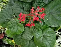 赪桐(学名:Clerodendrum japonicum (Thunb.) Sweet)是马鞭草科、大青属灌木,高1-4米,叶片圆心形,顶端尖或渐尖,基部心形,边缘有疏短尖齿,表面疏生伏毛,二歧聚伞花序组成顶生,大而开展的圆锥花序,花序的最后侧枝呈总状花序,花萼红色,外面疏被短柔毛,散生盾形腺体,花冠红色,稀白色,果实椭圆状球形,绿色或蓝黑色,花果期5-11月。