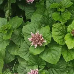 灌木,高1-4米;小枝四棱形,干后有较深的沟槽,老枝近于无毛或被短柔毛,同对叶柄之间密被长柔毛,枝干后不中空。叶片圆心形,长8-35厘米,宽6-27厘米,顶端尖或渐尖,基部心形,边缘有疏短尖齿,表面疏生伏毛,脉基具较密的锈褐色短柔毛,背面密具锈黄色盾形腺体,脉上有疏短柔毛;叶柄长0.5-15厘米,少可达27厘米,具较密的黄褐色短柔毛。