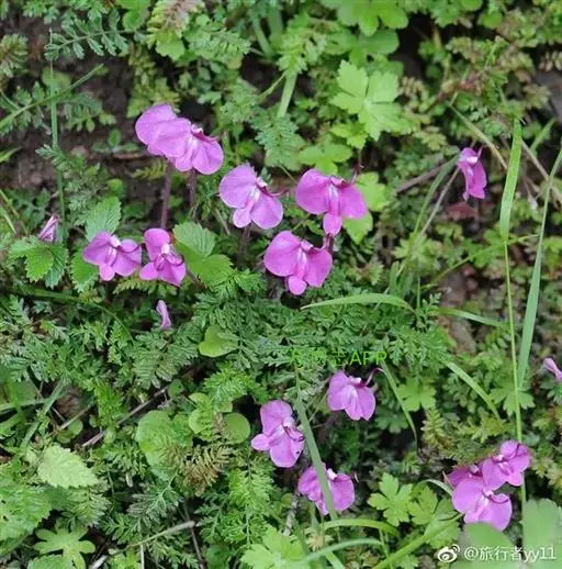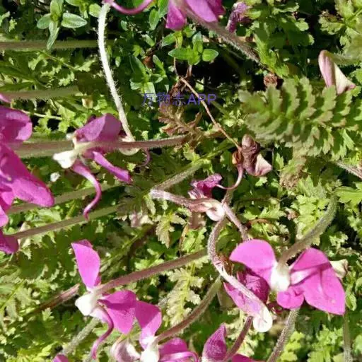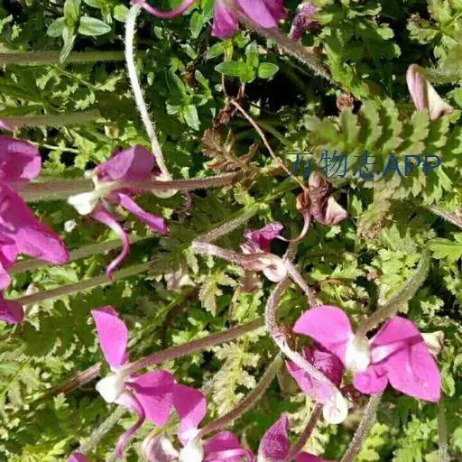 藓生马先蒿又名:藓状马先蒿。多年生草本,干时多少变黑,多毛。根茎粗,有分枝,端有宿存鳞片。茎丛生,在中间者直立,在外围者多弯曲上升或倾卧,长达25厘米,常成密丛。叶有柄,柄长达1.5厘米,有疏长毛;叶片椭圆形至披针形,长达5厘米,羽状全裂,裂片常互生,每边4-9枚,有小柄,卵形至披针形,有锐重锯齿,齿有凸尖,面有疏短毛,沿中肋有密细毛,背面几光滑。花皆腋生,自基部即开始着生,梗长达15毫米,一般较短,密被白长毛至几乎光滑;萼圆筒形,长达11毫米,前方不裂,主脉5条,上有长毛,齿5枚,略相等,基部三角形而连于萼管,向上渐细,均全缘,至近端处膨大卵形,具有少数锯齿;花冠玫瑰色,管长4-7.5厘米,外面有毛,盔直立部分很短,几在基部即向左方扭折使其顶部向下,前方渐细为卷曲或S形的长喙,喙因盔扭折之故而反向上方卷曲,长达10毫米或更多,下唇极大,宽达2厘米,长亦如之,侧裂极大,宽达1厘米,稍指向外方,中裂较狭,为长圆形,长约8毫米,宽6.5毫米,钝头;花丝两对均无毛,花柱稍稍伸出于喙端。蒴果稍扁平,偏卵形,长1厘米,宽7毫米,为宿萼所包。花期5-7月;果期8月。