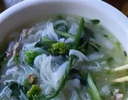 再烧半锅水,水里放盐(搅拌均匀,尝起来咸一些),水滚时分别把米粉放水里烫一下再捞起,加入准备好的配料,最后加入螺蛳汤螺蛳粉就完成了 。