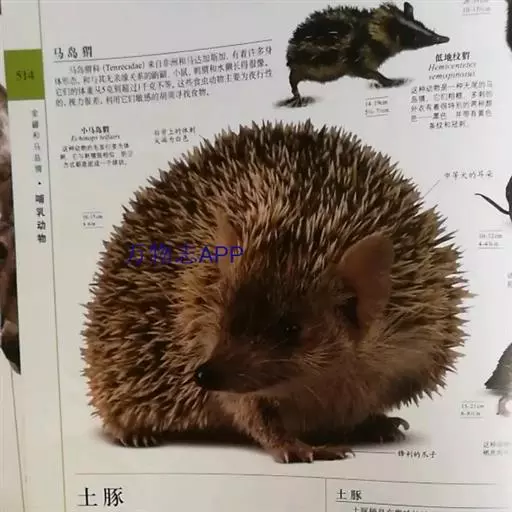 又称刺食蚁兽,身上即有毛又有棘刺,喙长,以白蚁等为食,擅长挖掘。针鼹虽为卵生的单孔类,却也有育儿袋,卵直接产到育儿袋中孵化,而孵化后幼兽继续在袋中生活一段时间。
