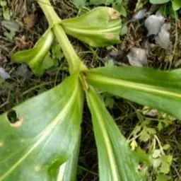多年生草本,高30-40厘米,全株光滑无毛,基部被枯存的纤维状叶鞘包裹。须根多条,扭结或粘结成一个粗的根。枝少数丛生,粗壮,斜升,黄绿色或带紫红色,近圆形。莲座丛叶卵状椭圆形或狭椭圆形。长12-20厘米,宽4-6.5厘米,先端钝或急尖,基部渐尖,边缘微祖糙,叶脉5-7条,在两面均明显,并在下面突起,叶柄宽,长5-8厘米,包被于枯存的纤维状叶鞘中;茎生叶卵状椭圆形至卵状披针形,长6-16厘米,宽3-5厘米,先端钝至急尖,基部钝,边缘微粗糙,叶脉3-5条,在两面均明显,并在下面突起,叶柄宽,近无柄至长达3厘米,愈向茎上部叶愈大,柄愈短,至最上部叶密集呈苞叶状包被花序。