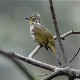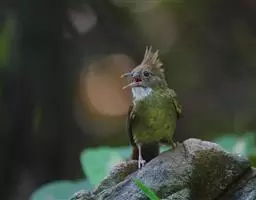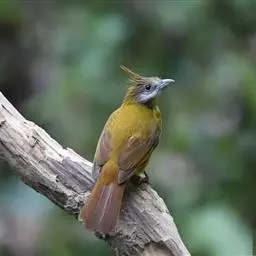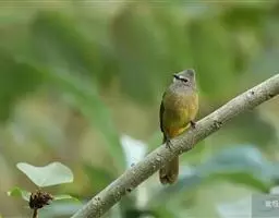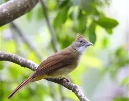 黄腹冠鹎:体长19-24厘米,是一种体型略大的褐色鹎。头顶橄榄褐色具黑褐色羽冠。白色的喉膨起,…