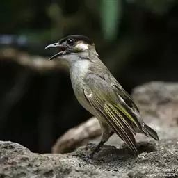 黑头鹎:体长17厘米。是一种中等体型的偏黄色鹎。特征为头辉黑、喉黑而眼蓝。上体黄橄榄色;两翼及尾偏黑,…