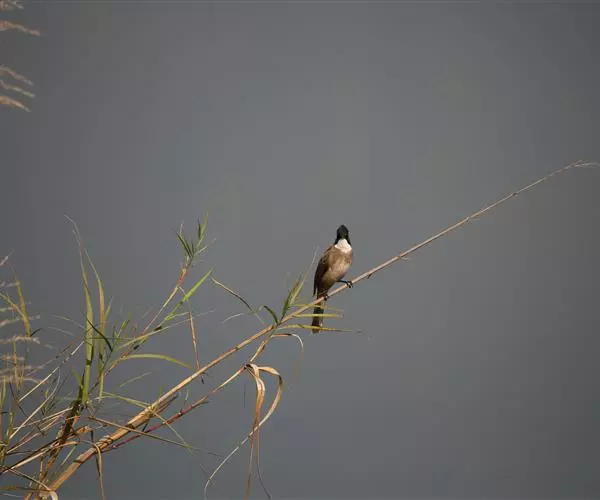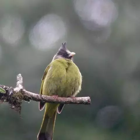 灰短脚鹎,体长19-22厘米。头顶和短的羽冠黑色,上体暗灰色,耳羽灰褐色,两翅表面橄榄绿黄色。…