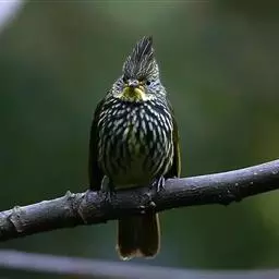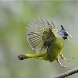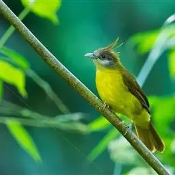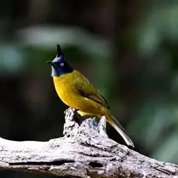黑冠黄鹎:体长18-21厘米,是一种中等体型偏黄色鹎。整个头、颈、颏、喉黑色,头顶有显著直立的羽冠,…