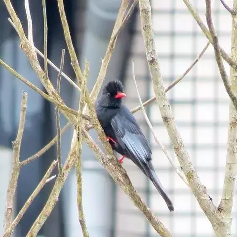 凤头雀嘴鹎:属小型鸟类,体长18-22厘米。嘴粗短、呈象牙色或乳黄色,前额和脸灰色,头顶黑色,…