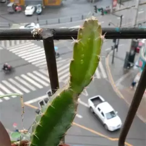 绿色,体长75至96毫米,头部淡绿,胸部绿色,背有横排列的白色颗粒8至9排;腹部黄绿色,体侧有白色斜带7条;尾角褐绿,上面有紫褐色颗粒,长12至13毫米,气门黑色,胸足黄褐色,腹足绿色。