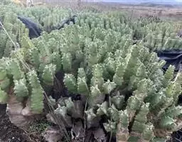 魁伟玉原产南非,是一种大戟科的多年生肉质植物,植株具粗圆筒形肉质茎,有10条以上的突出棱,…