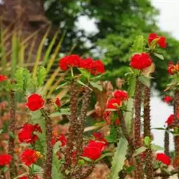 铁海棠为大戟科大戟属蔓生灌木植物;茎多分枝,具纵棱,呈旋转状;叶互生,…
