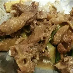 4、食用前先将鸭身放入大盘内(不要加水),淋上绍酒,撒上白糖、葱、姜,上笼用旺火蒸至鸭翅上有 细裂缝时即成,倒入腹内的卤水,冷却后切块装盘。工艺提示