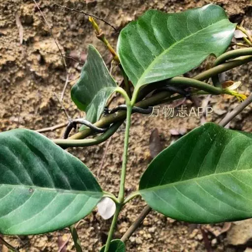买麻藤 大藤本,高达10米以上,小枝圆或扁圆,光滑,稀具细纵皱纹。叶形大小多变,通常呈矩圆形,稀矩圆状披针形或椭圆形,革质或半革质,长10-25厘米,宽4-11厘米,先端具短钝尖头,基部圆或宽楔形,侧脉8-13对,叶柄长8-15毫米。