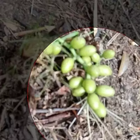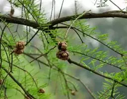 雌球花序侧生老枝上,单生或数序丛生,总梗长2-3厘米,主轴细长,有3-4对分枝,雌球花穗长2-3厘米,径约4毫米,每轮环状总苞内有雌花5-8,胚珠椭圆状卵圆形,先端有短珠被管,管口深裂成条状裂片,基部有少量短毛;雌球花穗成熟时长约10厘米。