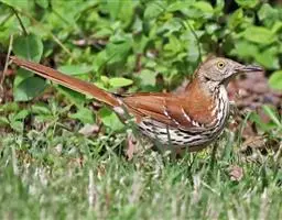 戴胜(学名:Upupa epops):共有8个亚种。依不同亚种体长26-28厘米,翼展42-46厘米,体重55-80克。头顶羽冠长而阔,呈扇形。颜包为棕红色或沙粉红色,具黑色端斑和白色次端斑。头侧和后颈淡棕色,上背和肩灰棕色。下背黑色而杂有淡棕白色宽阔横斑。初级飞羽黑色,飞羽中部具一道宽阔的白色横斑,其余飞羽具多道白色横斑。翅上覆羽黑色,也具较宽的白色或棕白色横斑。腰白色,尾羽黑色而中部具一白色横斑。颏、喉和上胸葡萄棕色。腹白色而杂有褐色纵纹。虹膜暗褐色。嘴细长而向下弯曲,黑色,基部淡肉色,脚和趾铅色或褐色。