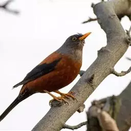 灰头鸫:中型鸟类,体长23-27厘米。整个头、颈和上胸褐灰色,两翅和尾黑色,上、下体羽栗棕色。…