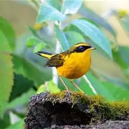 金色林鸲是鹟科、鸲属小型鸟类,体长12-15厘米。头顶至背黄橄榄绿色,眼先和头侧黑褐色,眉纹金橙黄色。…