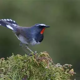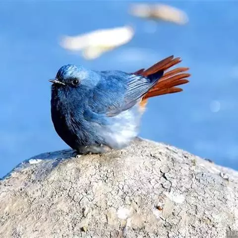 白喉红尾鸲,小型鸟类,体长14-16厘米。雄鸟额至枕钴蓝色,头侧、背、两翅和尾黑色,翅上有一大形白斑,…