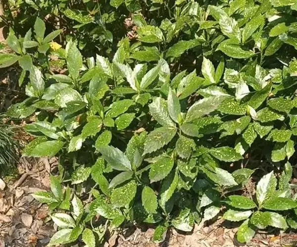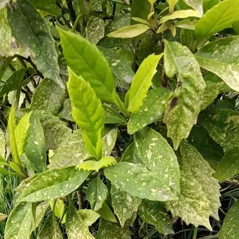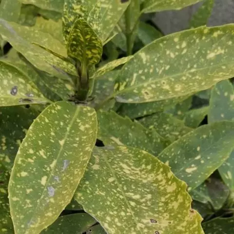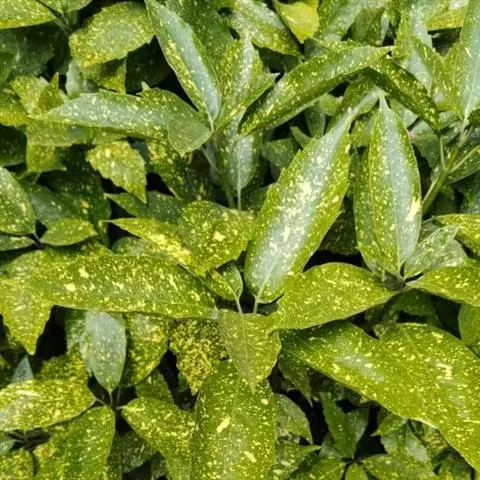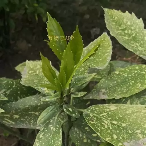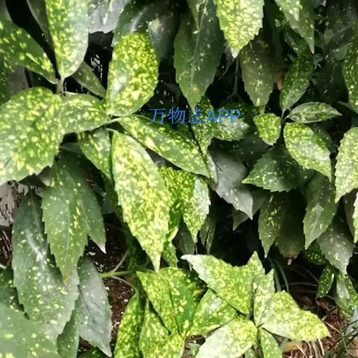花叶青木(变种)(华北经济植物志要)洒金叶珊瑚(江苏),金沙树(日本)本变种的叶片有大小不等的黄色或淡黄色斑点,植株常高1-1.5米。易与原变种区别。