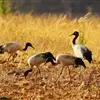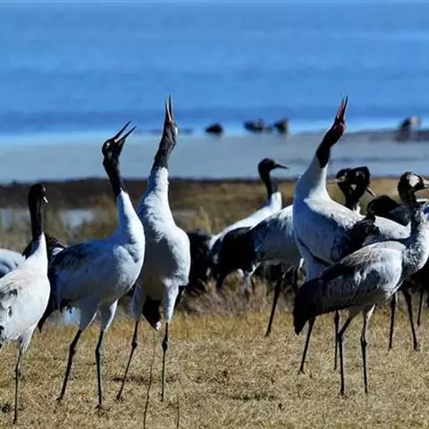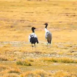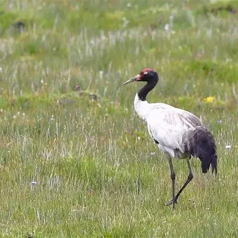 黑颈鹤:是鹤科、鹤属的大型涉禽,体长110-120厘米,体重4-6千克。颈、脚甚长,通体羽毛灰白色,…