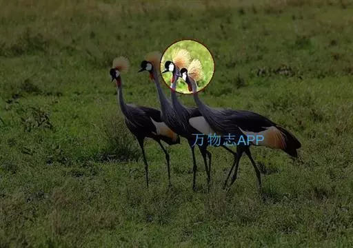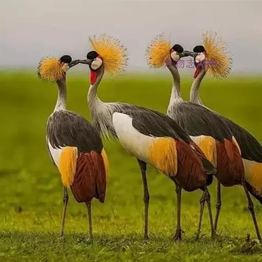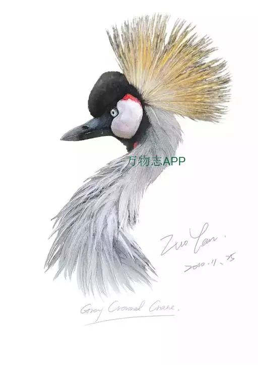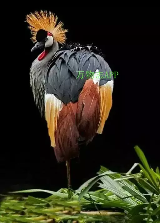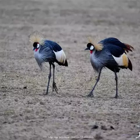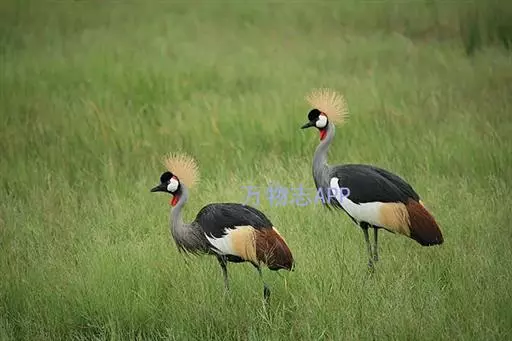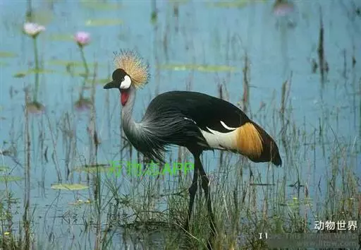 东非冕鹤是大型涉禽。体长127厘米。额部向外凸出,有乌黑色绒羽,…