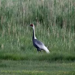 白枕鹤体形与丹顶鹤相似,略小于丹顶鹤,而大于白头鹤。上体为石板灰色。尾羽为暗灰色,…