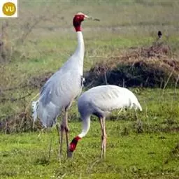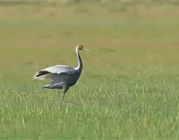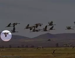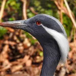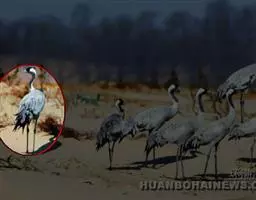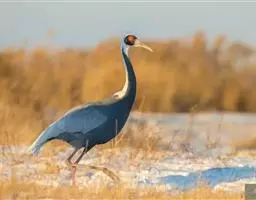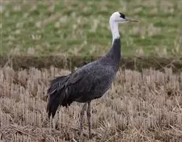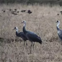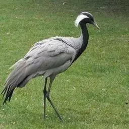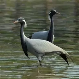 蓑羽鹤大型涉禽,体长68~92厘米,是鹤类中个体最小者。通体蓝灰色,眼先、头侧、喉和前颈黑色,…