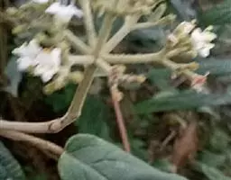 皱叶荚蒾是五福花科荚蒾属的小乔木植物。植株高达4米;叶柄及花序均被由黄白色、黄褐色或红褐色簇状毛组成的厚绒毛;小枝粗壮,稍有棱角;叶革质,卵状矩圆形至卵状披针形;聚伞花序稠密,总花梗粗,四角状,花冠呈现白色,雄蕊高出花冠;果实红色,后变黑色,宽椭圆形,无毛;花期为4-5月;果熟期为9-10月。皱叶荚蒾原产于中国,分布于陕西、湖北、四川及贵州等地。生长于山坡林下或灌丛中,海拔800-2400米。其性喜好阳光,耐半阴,喜温暖,有一定的耐寒性,喜湿润,不耐涝,耐中度盐碱,但在深厚肥沃、排水良好的中性或微酸性沙质土壤中生长更好,耐修剪,生长缓慢。其一般的繁殖方式为播种和扦插繁殖。皱叶荚蒾味苦,性凉。具有清热解毒、凉血止血的功效。可用于湿热痢疾、痈疽疮疖、咳血、吐血、便血、跌打损伤等疾病。皱叶荚蒾给人以郁郁葱葱的景象,全年观叶、春季观花