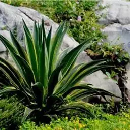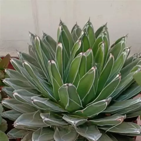 皇后龙舌兰是天门冬科、龙舌兰属多年生草本多浆植物。无主茎,叶丛生,莲座状,株幅40厘米。叶较多,…