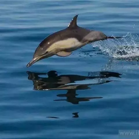 真海豚,身体细而流线型。体色十分复杂而独特,通常十字交叉型,黄褐色在前灰色在后,背面黑色向下延伸,…