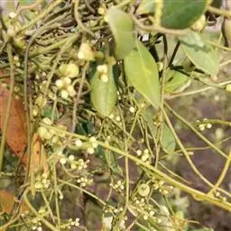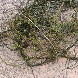 无根藤寄生缠绕草本植物,借盘状吸根攀附于寄主植物上。茎线形,稍木质,叶退化为微小的鳞片。…
