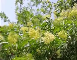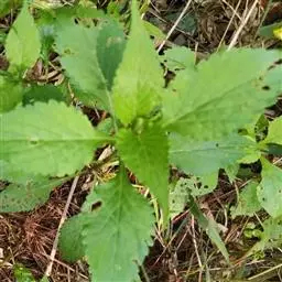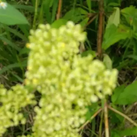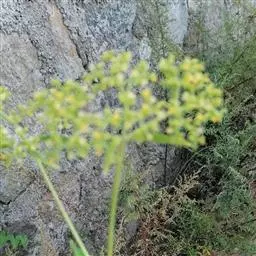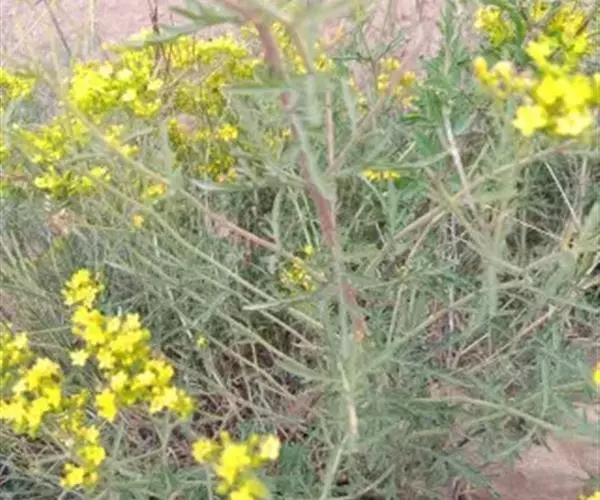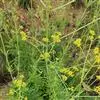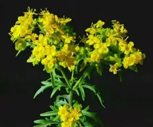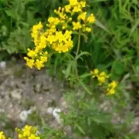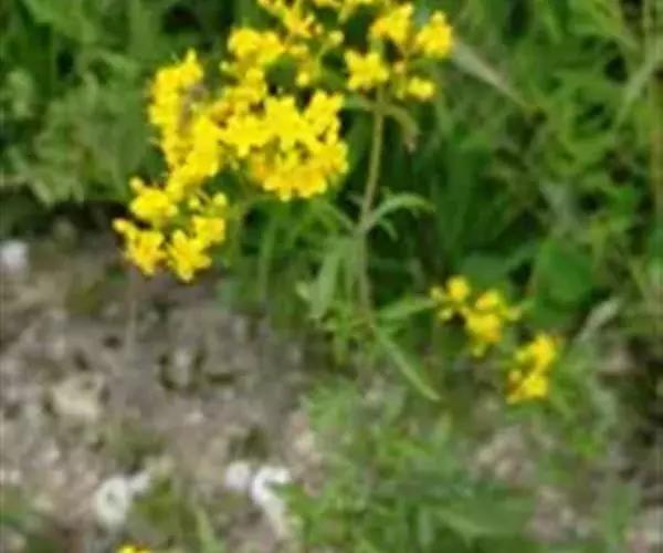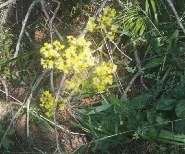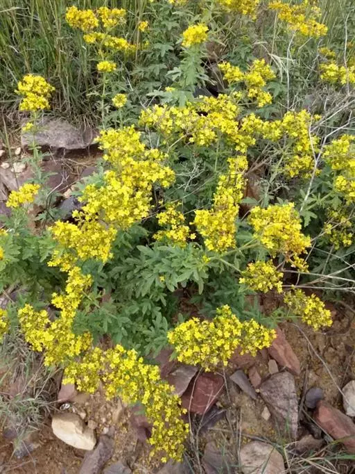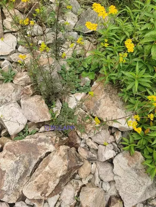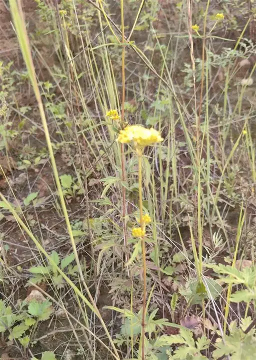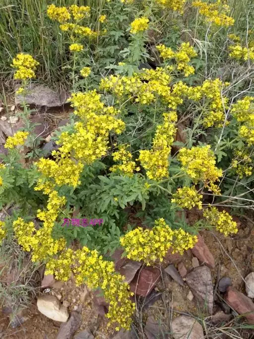 糙叶败酱( Patrinia rupestris Juss.subsp.scabra H.J.Wang),败酱科植物,多年生草本,茎丛生,茎上部多分枝,叶对生,裂片倒披针形、狭披针形或长圆形,聚伞花序顶生,呈伞房状排列,花小,黄色,花冠合瓣,果实翅状,卵形或近圆形,种子位于中央。