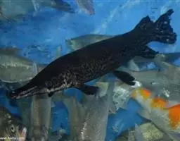 鳄雀鳝(学名:Atractosteus spatula):是北美7种雀鳝鱼中最大的一种,体长范围5至8英尺(1米52-2米44)。雌性比雄性略大,是现存7种雀鳝中体型最大的一种。鱼身呈长筒形,吻部前突,跟鳄鱼一样的短吻和上下颚密布两排匕首般锋利的牙齿,因此得名。身体覆盖着一层菱形釉层的硬磷,像是穿着钢盔铁甲。背部呈褐色或橄榄色,腹部则较为浅色。鳞片是菱形硬鳞,美洲印第安人有时会拿来作为宝石。雌鱼比雄鱼略大,是现存雀鳝目中体型最大的一种。