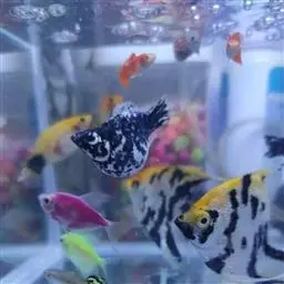 米奇鱼是鳉形目花鳉科剑尾鱼属鱼类,别名熊猫鱼。体长4厘米。仔鱼全身半透明,带一点金黄色,…