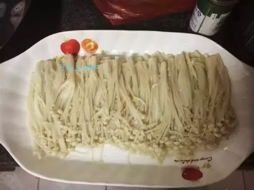 ⑴预煮把5%~10%食盐水置于铝锅内煮沸,倒入金针菇,煮沸5~7分钟,捞出沥去水分。