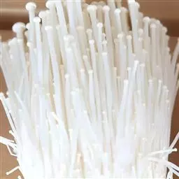 白金针菇 浙江省江山市微生物研究所菌株。出菇整齐,每丛200株左右,柄长15~23厘米,菌盖内卷,不易开伞。白色品系对光线不敏感,即使栽培环境有较强的散射光,子实体仍是通体洁白,有光泽,适合制罐或盐渍加工出口。