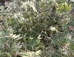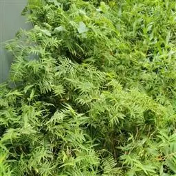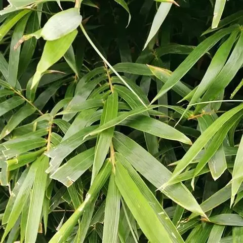 凤尾竹 Raeusch. ex Schult. ’Fernleaf’ R. A. Young)是禾本科,簕竹属孝顺竹的变种。植株较高大,杆高可达6米,竿中空,小枝稍下弯,下部挺直,绿色;竿壁稍薄;节处稍隆起,无毛;叶鞘无毛,纵肋稍隆起,背部具脊;叶耳肾形,边缘具波曲状细长繸毛;叶舌圆拱形,叶片线形,上表面无毛,下表面粉绿而密被短柔毛,小穗含小花,中间小花为两性;外稃两侧稍不对称,长圆状披针形,先端急尖;内稃线形,脊上被短纤毛,花药紫色,子房卵球形,羽毛状。成熟颖果未见。原产中国,华东、华南、西南以至台湾、香港均有栽培。凤尾竹喜温暖、湿润和阳光充足的环境,耐寒。宜土层深厚、肥沃、疏松的微酸性壤土。该种观赏价值较高,宜作庭院丛栽,也可作盆景植物。全草或根入药,味淡、微苦,性寒,有清热利湿、凉血止血、消肿解毒功效,可治痢疾、泄泻等多种病症。凤尾
