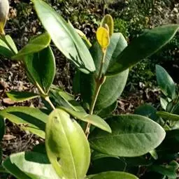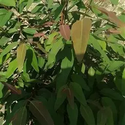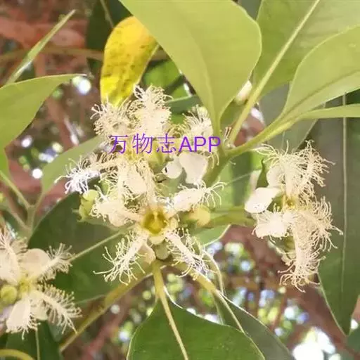 乔木,高20米,胸径约50厘米;树皮黑褐色,多少宿存,坚硬;嫩枝初时扁而有棱,稍;后变圆形,有短毛。叶片革质,聚生于枝顶,假轮生,长圆形或卵状披针形,长7-15厘米,宽3-7厘米,先端渐尖或尖锐,基部楔形,上面多突起腺点,下面有时带灰色,侧脉12-18对,相隔3-6毫米,以50度-60度开角斜向上,在下面稍突起,网脉明显;叶柄长1-2厘米,扁平。
