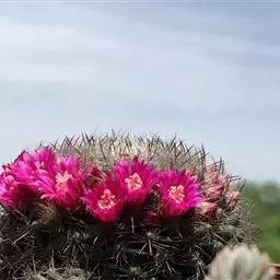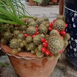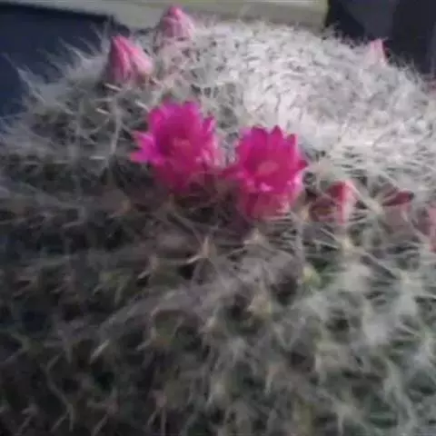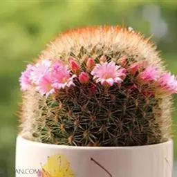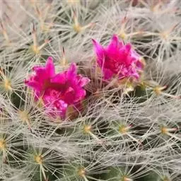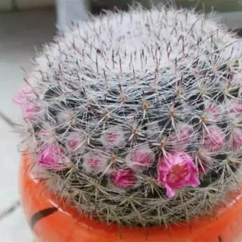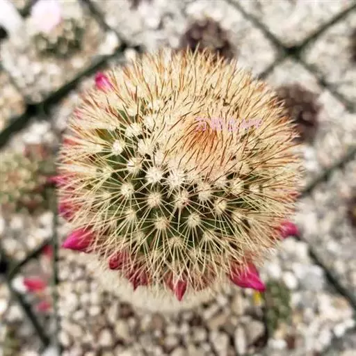 仙人掌科乳突球属原产墨西哥,通常单生,茎圆桶形,径粗9-10cm,高25-30cm,深绿色。棱13-21,放射刺20-30,中刺7-15,长2cm,红褐色。花色紫红。喜温暖干燥和阳光充足环境。较耐寒,耐干旱和半荫,不耐水湿。土壤以疏松、肥沃和排水良好的沙质壤土。生长适温为18-24°C,冬季温度不低于5°C。