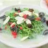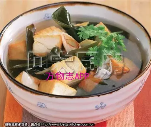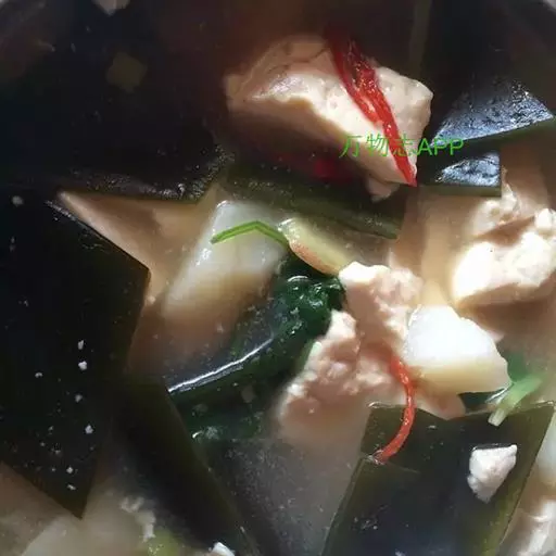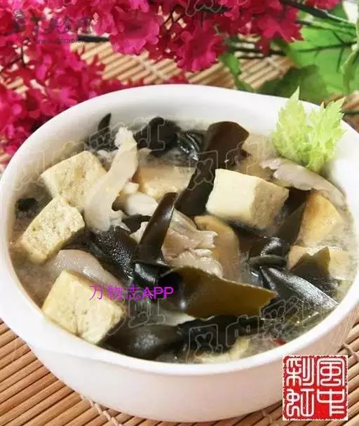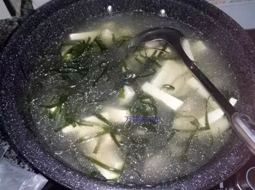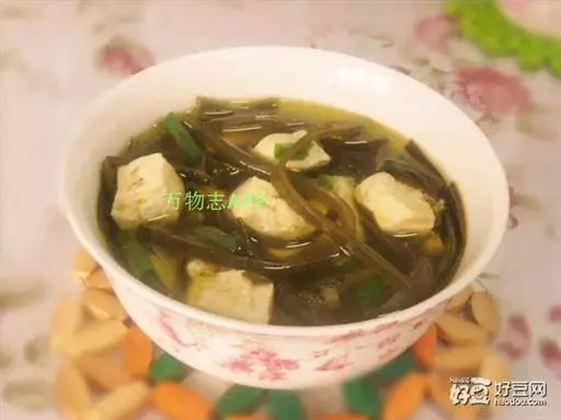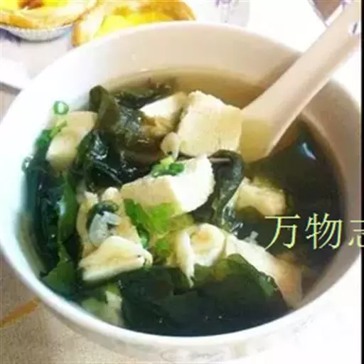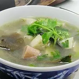 豆腐海带汤是一道色香味俱全的传统名肴,属于北京菜。将豆腐切丁,菠菜切段,海带切丝;锅内放入开水,加豆腐丁、海带丝、葱花;水沸放菠菜;煮片刻加盐、味精、胡椒粉、香油即盛入碗内。