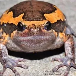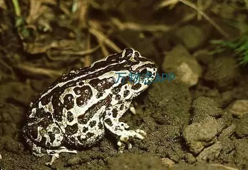 花背蟾蜍体形较小,一般60mm左右;指细而尖,第四指短,达第三指远端第二关节下瘤或为第三指的1/2;外蹠突远小于内蹠突;雄蟾声囊无色素。