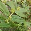 花序数个簇生于叶腋或枝顶,每个花序基部具纤细的柄,柄长3-5毫米;总苞陀螺状,高与直径各约1毫米或稍大;边缘5裂,裂片卵状三角形;腺体4,边缘具白色或淡粉色附属物。雄花数枚,微伸出总苞外;雌花1枚,子房柄长于总苞;子房三棱状,无毛;花柱3,分离;柱头2浅裂。蒴果三棱状,长约1.5毫米,直径约2毫米,无毛,成熟时分裂为3个分果爿。种子卵棱状,长约1.2毫米,直径约0.8毫米,每个棱面具数个皱纹,无种阜。花果期8-12月。