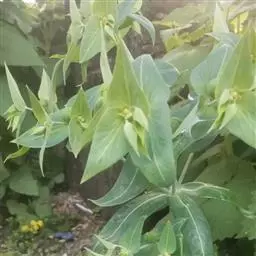 通奶草 一年生草本,长达15厘米,折断有白色乳汁。茎纤细,匍匐,多分枝,通常红色,稍被毛。单叶对生,有短柄,叶片卵圆形至矩圆形,长4~8毫米,宽3~4毫米,先端圆钝,基部偏斜,边缘有极细锯齿。夏日开淡紫色花,花单性,同株。