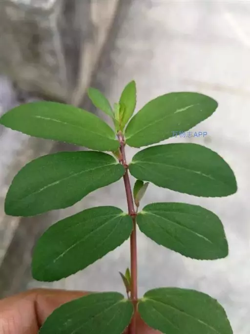 一年生草本,根纤细,长10-15厘米,直径2-3.5毫米,常不分枝,少数由末端分枝。茎直立,自基部分枝或不分枝,高15-30厘米,直径1-3毫米,无毛或被少许短柔毛。叶对生,狭长圆形或倒卵形,长1-2.5厘米,宽4-8毫米,先端钝或圆,基部圆形,通常偏斜,不对称,边缘全缘或基部以上具细锯齿,上面深绿色,下面淡绿色,有时略带紫红色,两面被稀疏的柔毛,或上面的毛早脱落;叶柄极短,长1一2毫米;托叶三角形,分离或合生。苞叶2枚,与茎生叶同形。